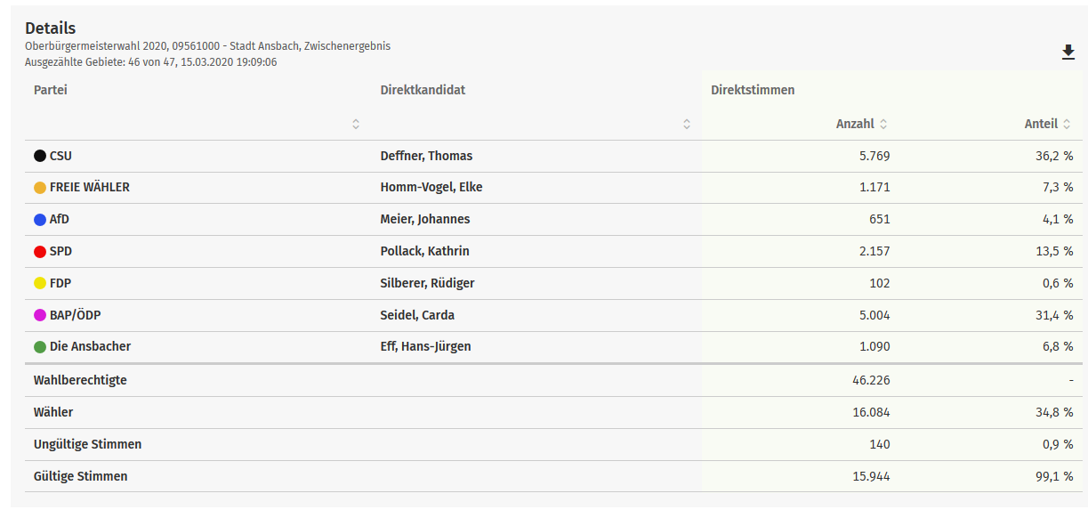 Zwischenstand Der Oberburgermeisterwahl Stadt Ansbach 15 03 2020 Frankischer De